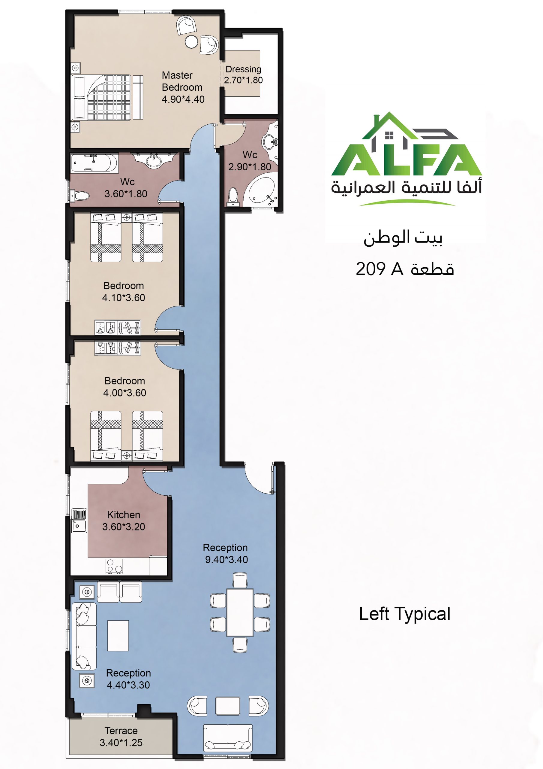 تصميمات العمائر في الحي متنوعة بين دور أرضي + 3 أدوار متكررة، مع تخصيص جراج ومخزن لكل وحدة.